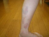 女房もCRFで遊んでたらしっかり転んであざを作ってしまいました。女性はあざの消えるのも遅く、色も白いのでくっきりと痛々しく跡が残ってます。奥様グループのバトミントンも周囲の反対にあい延期となってしまいました。「見た目ほど酷くはないんだけどねえ」女房談。