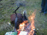 熱いのでこの日はココ、山の倉庫に置いといて、後日取りにいきました。1個だけもげなかったゴム部品が無くなってしまいました。(当然、燃え尽きた)