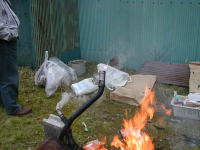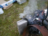 チャンバー(ノーマル)部はよく言われるように焼いてみる事にしました。山へ行って紙ごみを燃やすついでにチャンバーを焚き火にくべてみましょう。