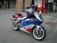 いつもの道で調子こいて走ってたらいつのまにか先頭のZXRをNSRとガンマでダブルアタック。うしろでZEP師匠が「接近戦や。」(にんまり)