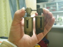 どちらもスプリングピンがバルブ本体を削っています。ピンの材質がバルブのそれよりも硬いということです。ピンはHRC40〜50はあるようですから普通に考えて結構硬いです。対してバルブはおそらくアルミ、表面の色はA7075に硬質アルマイト処理したものに酷似しています。