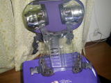 ヤフオク中古品です。思ったより小さくてこんなもんかなあと不安でしたけど、こんなもののようです。肩のやつをアジャストするとまあマシになりました。クリアとメッキがポイントです。 |
